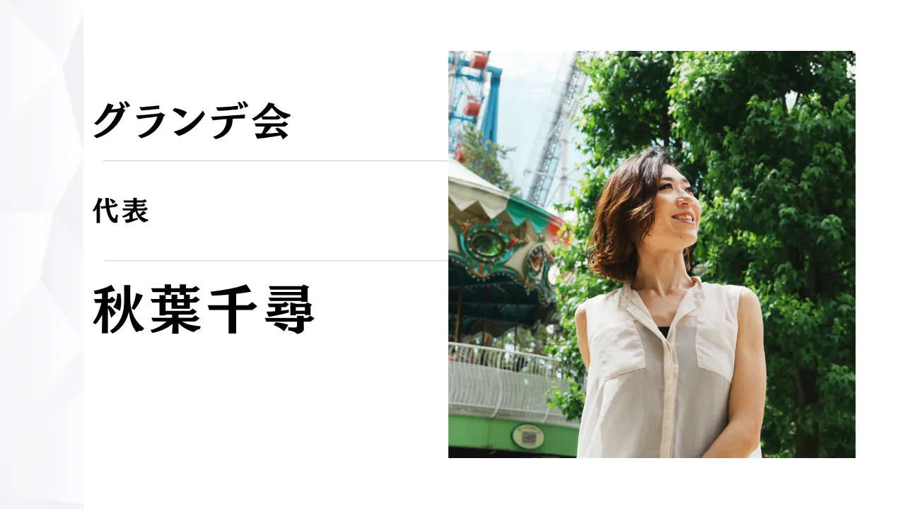 グランデ会の代表の秋葉千尋にオンラインで60分相談をすることができます。