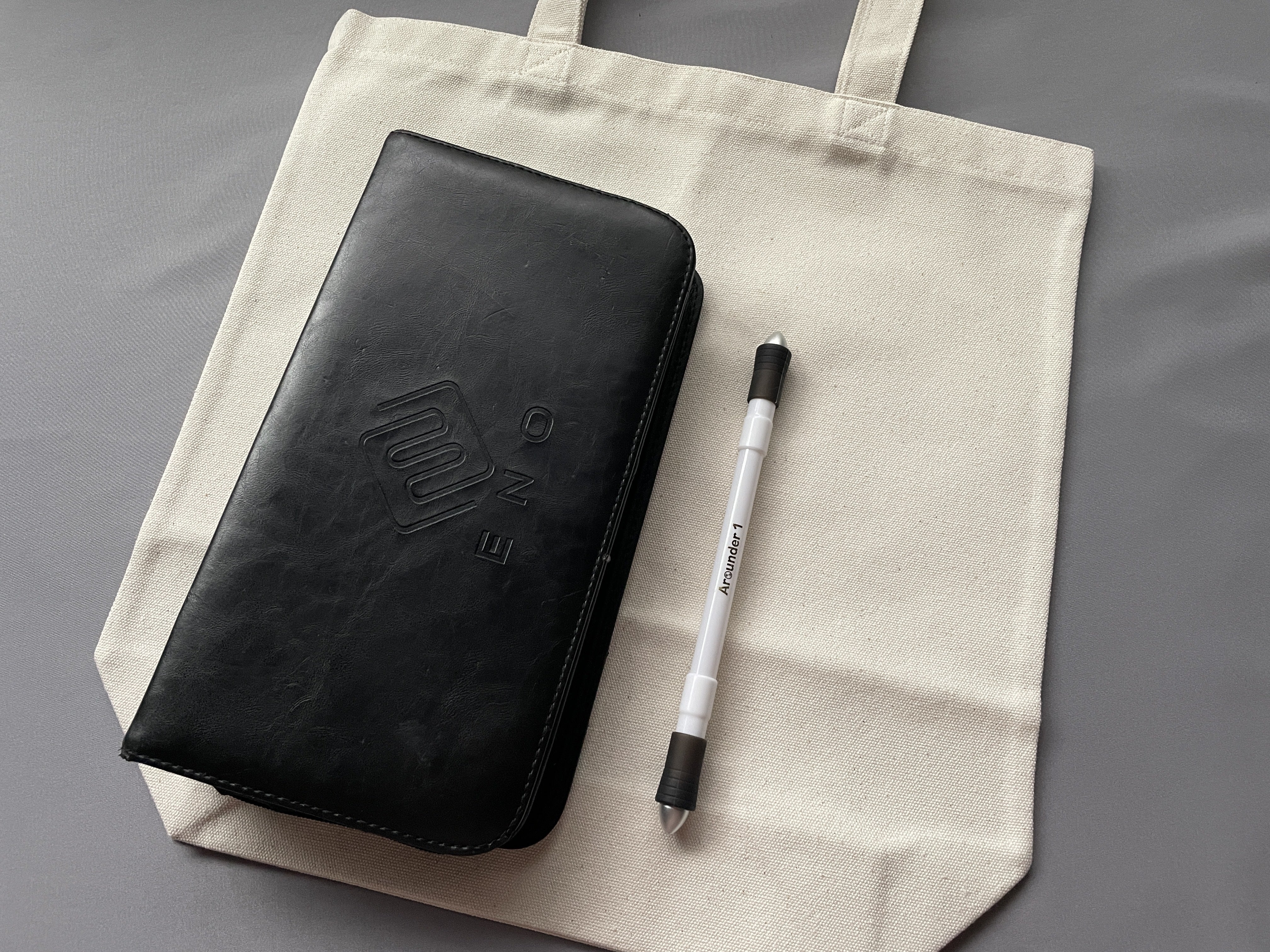 トートバッグコース (¥5,000) 以上のご支援でお届けするトートバッグのサンプルです!※ペンケースや専用ペンはサイズ比較用です。付属しません。ペン回し用の大型ペンケースも楽々入るサイズのトートバッグとなります。12オンスのしっかりとした生地です!リターンの際にはこの表面にNPFのロゴが入ります。