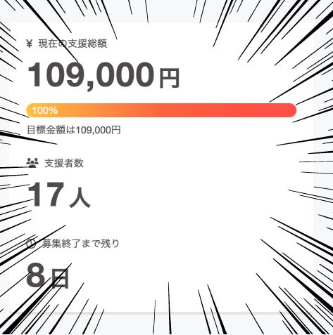 目標金額を達成しました!!皆様ご支援誠にありがとうございます!引き続き 7月20日 までご支援受け付けておりますのでよろしくお願いいたします!