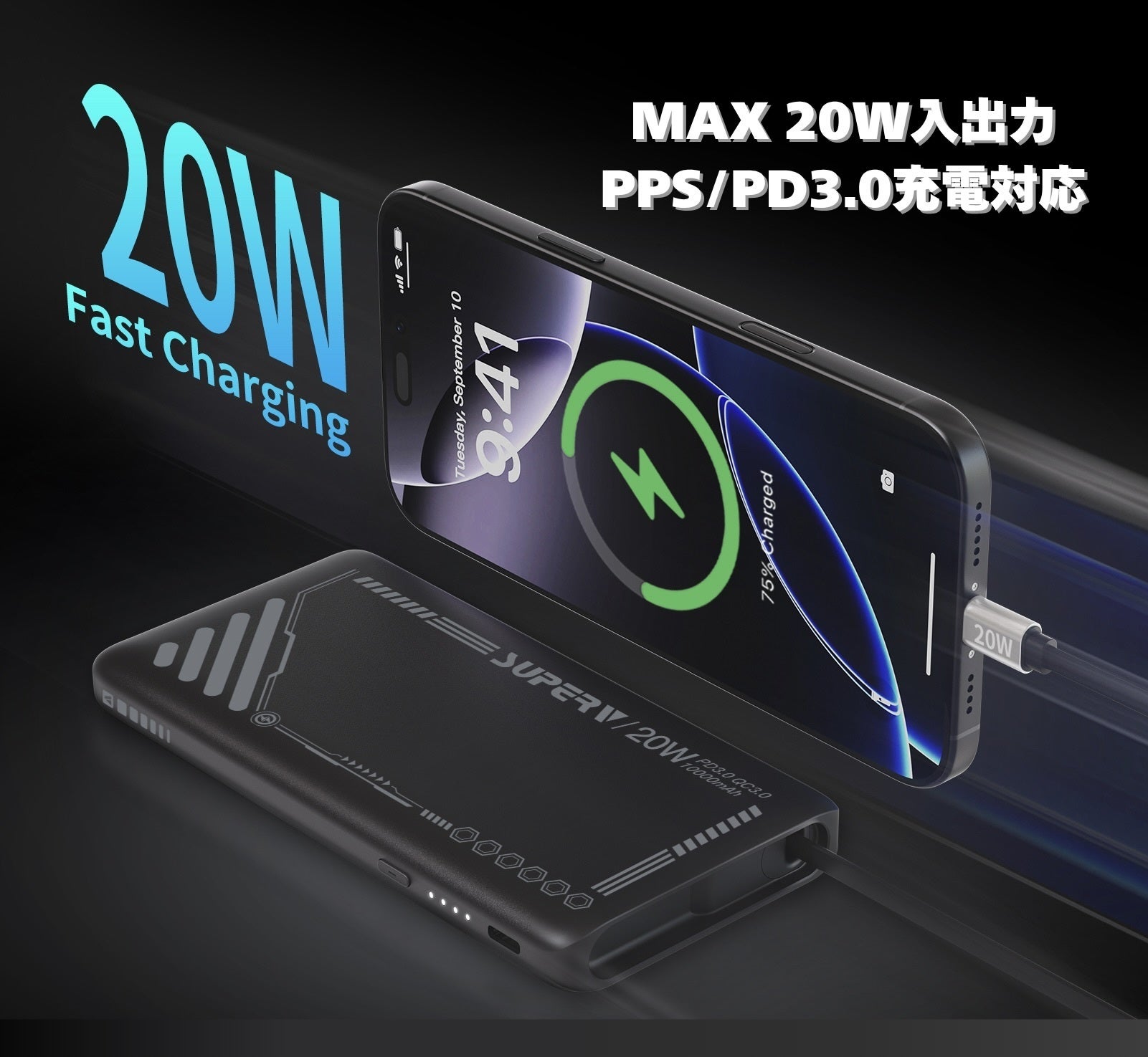 入出力:最大20W (PPS / PD3.0 / QC3.0対応)
