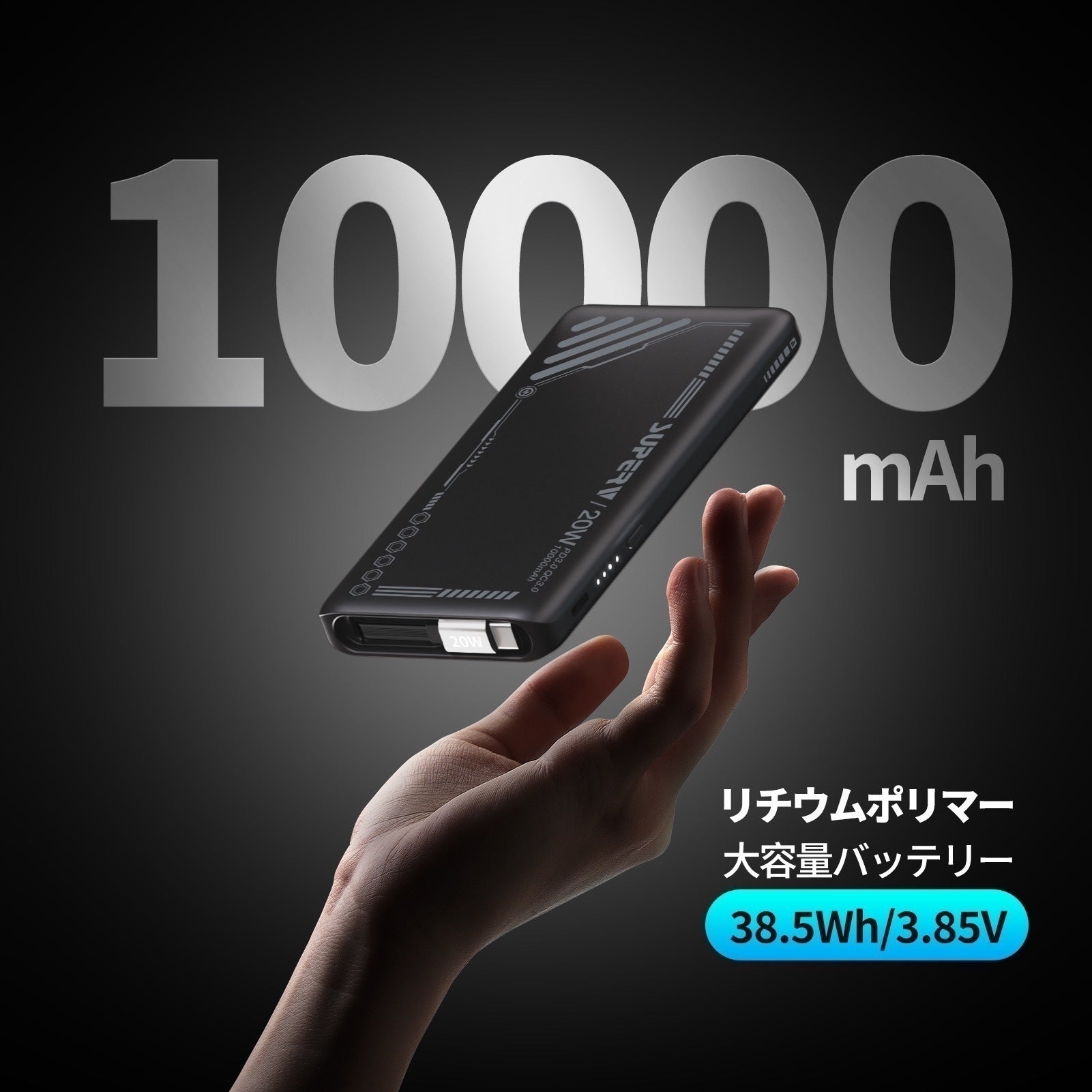 10000mAhの大容量リチウムポリマーバッテリーを搭載。