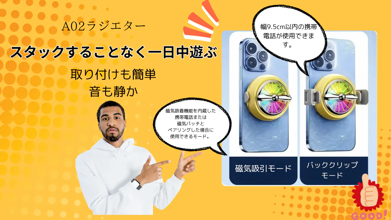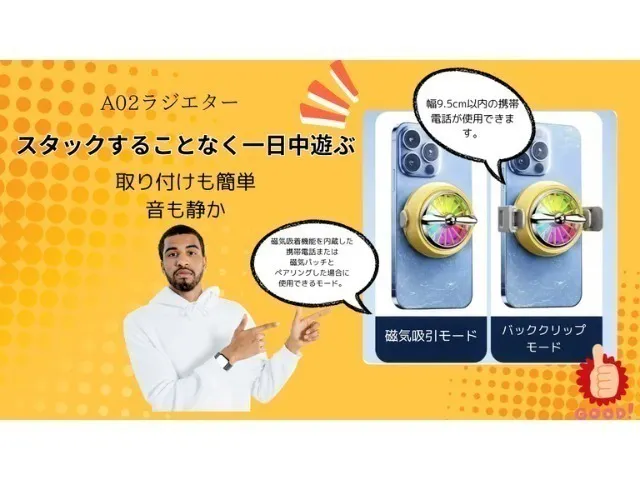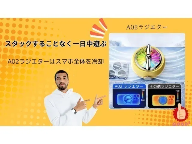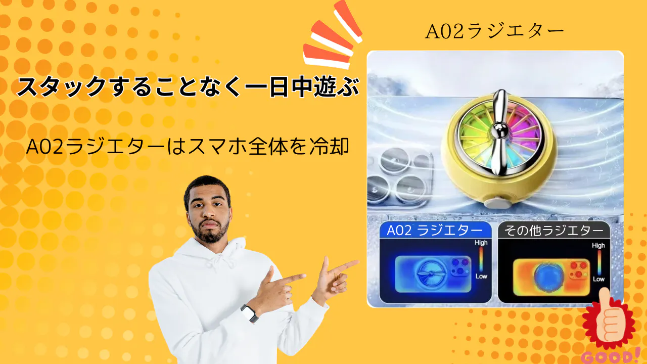 既存のものは付けた箇所だけを冷却するものが多い中、今回のA02はスマホ全体を冷却する優れものとなっています