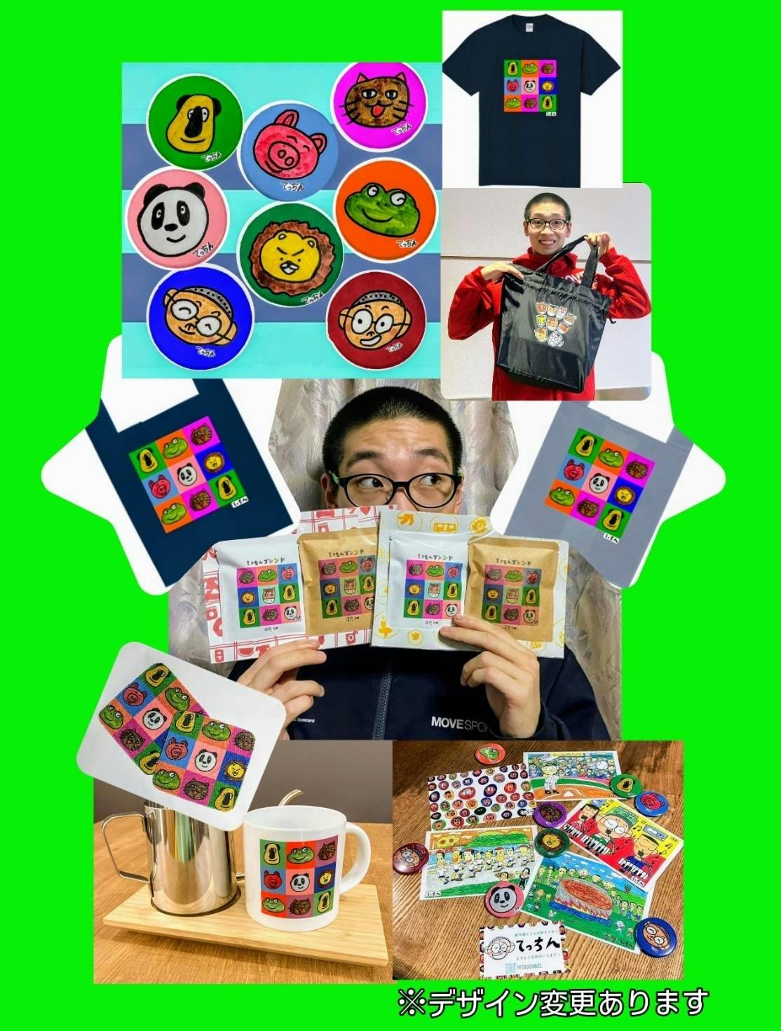 てっちんの絵がプリントされたカラフルでかわいい缶バッジ。バッグや服に付けて日常に彩りを。