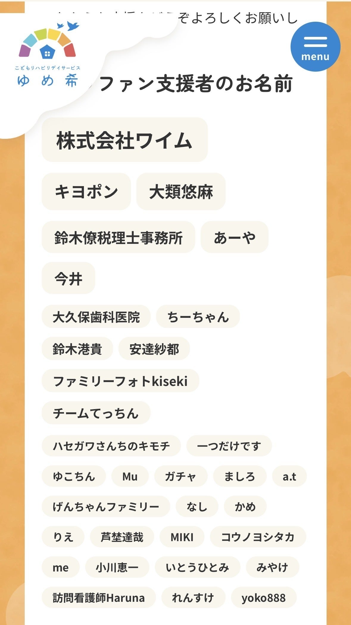 2026/02/14 18:00お世話になっております。ゆめ希代表の伊藤浩也です。このたびは、たくさんのあたたかいご支援を本当にありがとうございます。ホームページに、10,000円以上のご協力をいただいた皆さまのお名前を掲載させていただきました。(敬称略)※掲載を希望されていない方を除いて掲載しております。「名前が載っていない」「表記が違うかも?」などございましたら、お手数ですがご連絡いただけますと幸いです。現在、皆さまへのリターンを心を込めて準備中です。準備が整い次第、改めて発表・ご案内させていただきますので、もう少しだけ楽しみにお待ちくださいね。これからも、ゆめ希をどうぞよろしくお願いいたします。 もっと見る