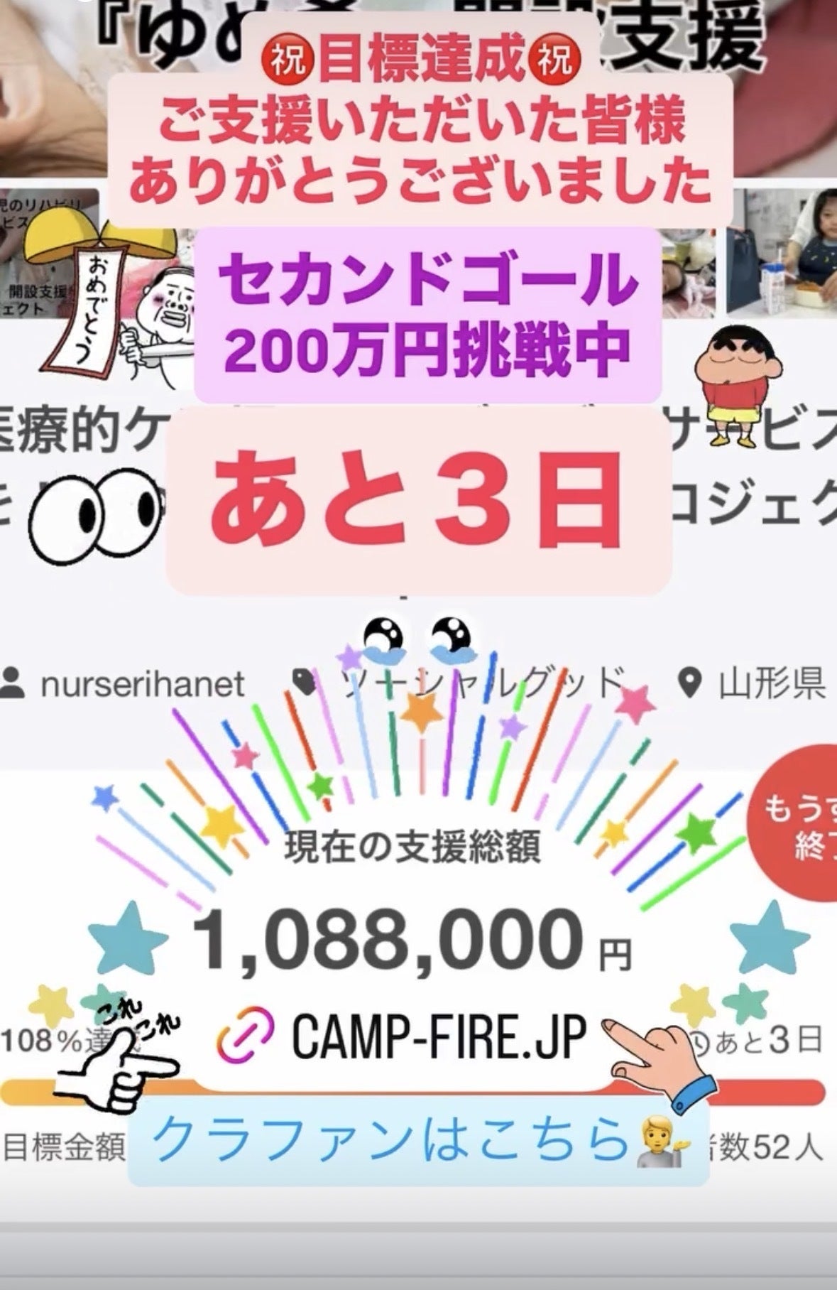 皆さまの温かいご支援により、クラウドファンディングは目標金額を達成することができました。