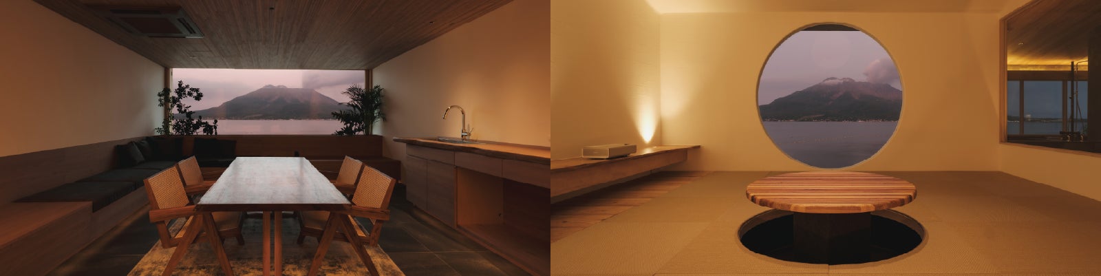 最大4名様までご宿泊可能な空間です。特に、ガラス張りの席からは桜島と錦江湾の息をのむような絶景を独り占めできます。ここで過ごす時間は、きっと久遠の思い出となるでしょう。