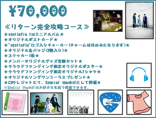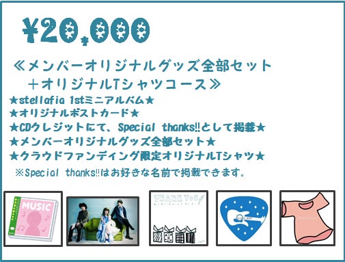 こちらはクラウドファンディング限定のグッズ製作の他、ライブハウス限定のstellafiaグッズの製作費用になります。