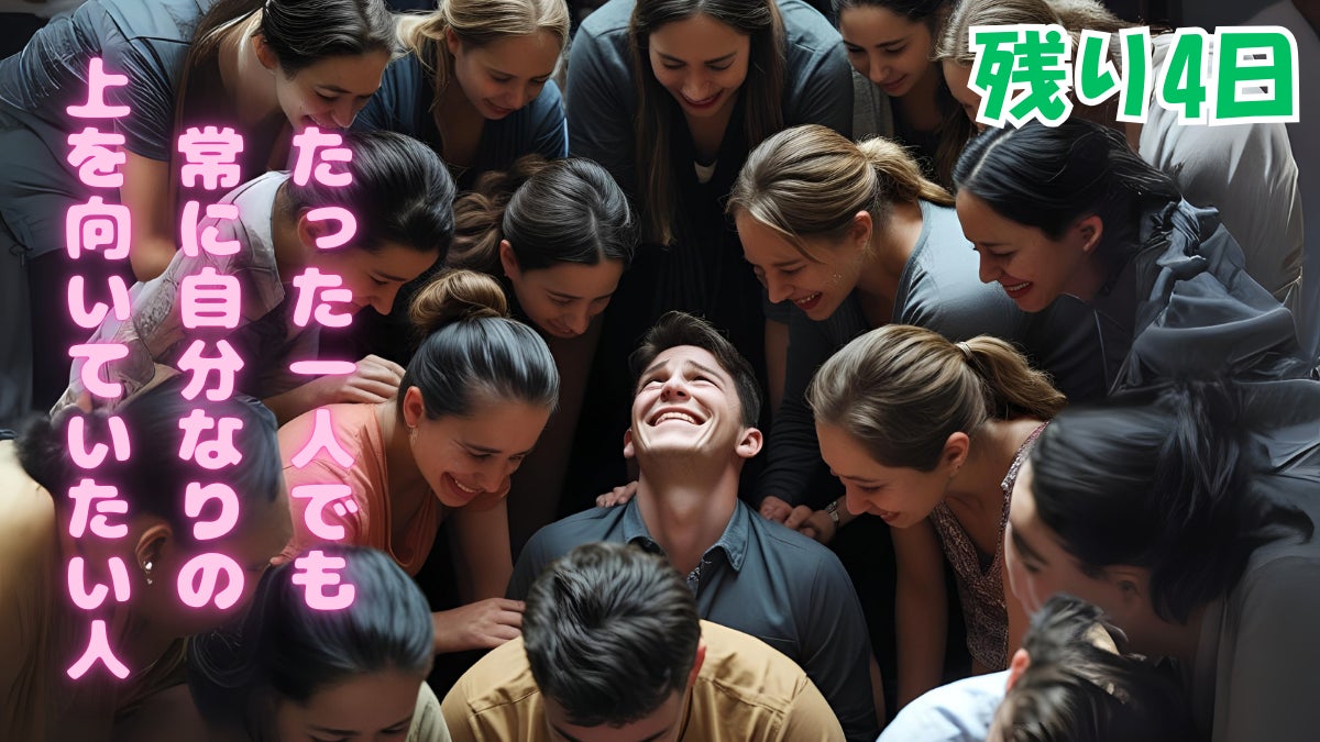 周りの全員が楽しそうに(何かいいことがありそうな)下の方を向いているのですが、1人だけ上を見続けている中央の男性。