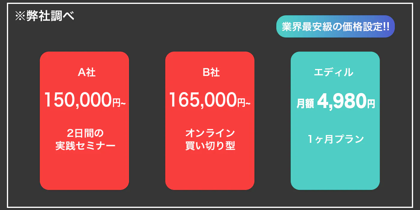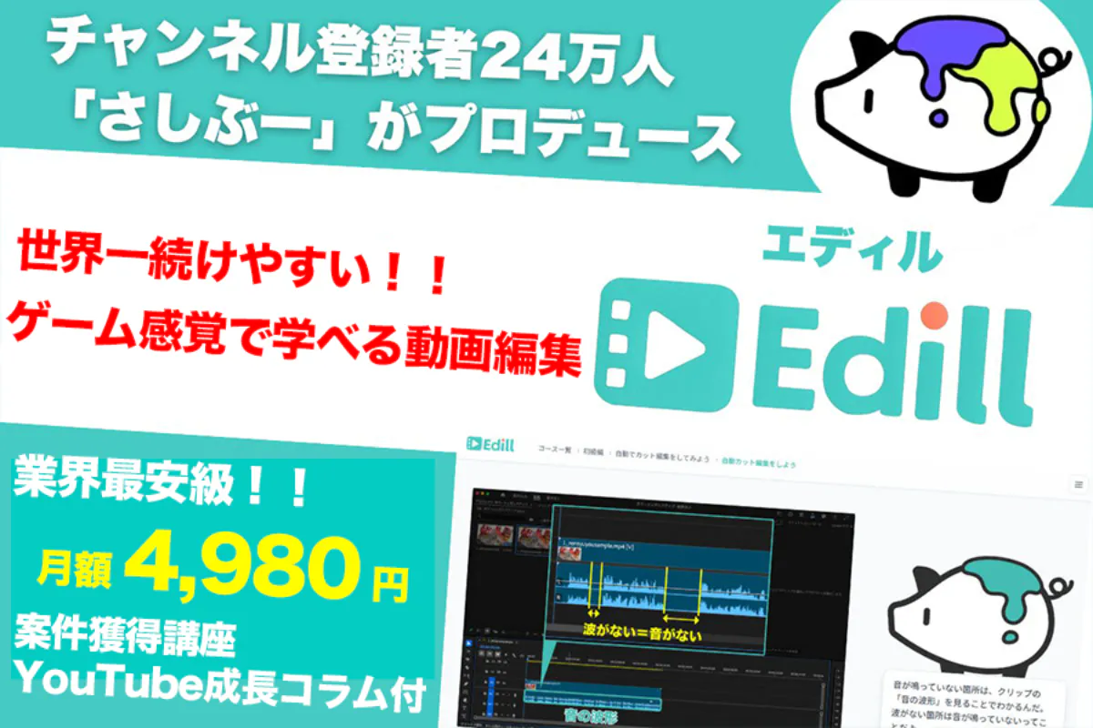 なので、エディルでは比較的安価に、動画編集を学ぶキッカケを提供したいと考えています。