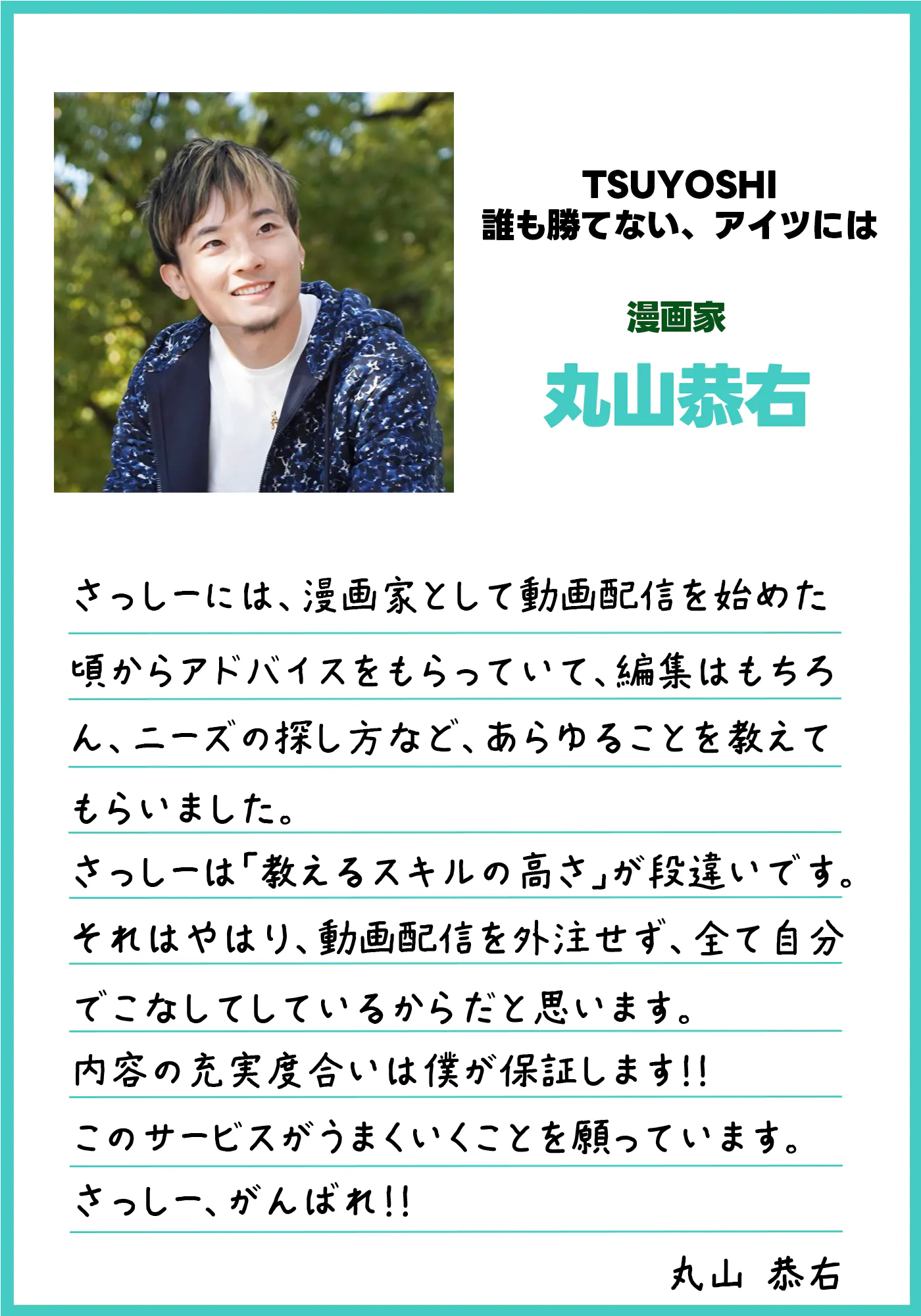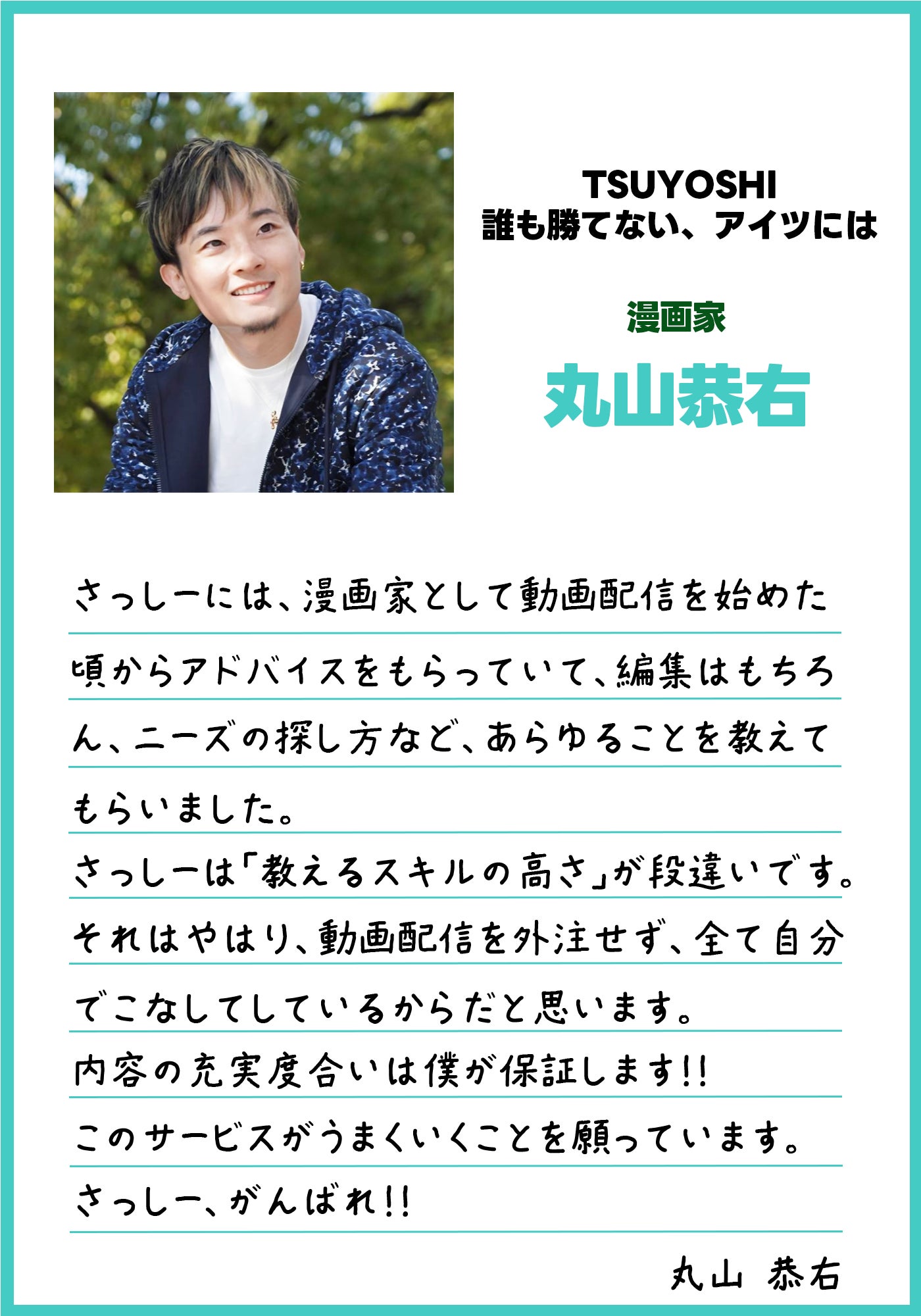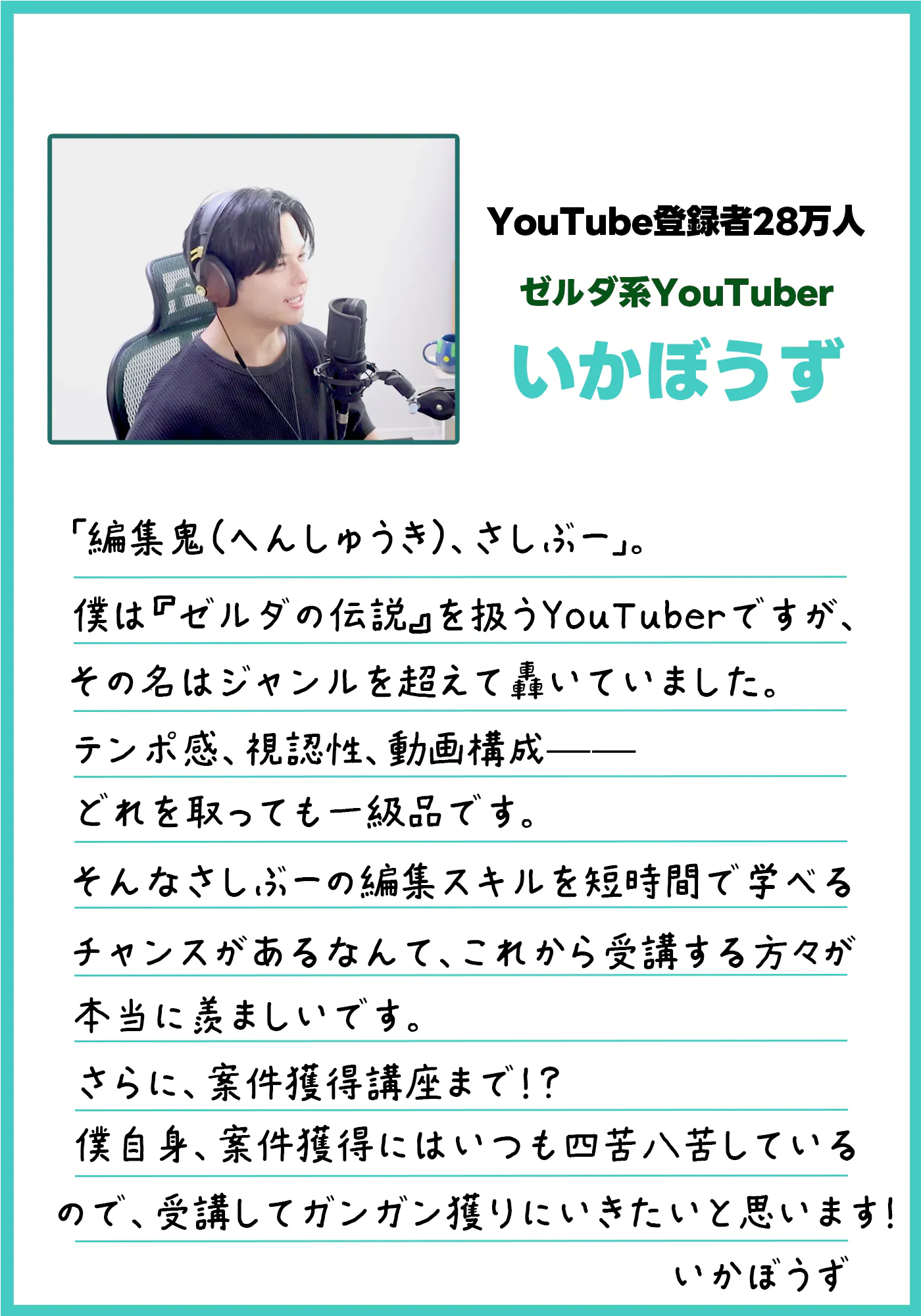 さしぶーからお礼のメッセージをお送りいたします。10,000円コース:さしぶーの動画編集添削