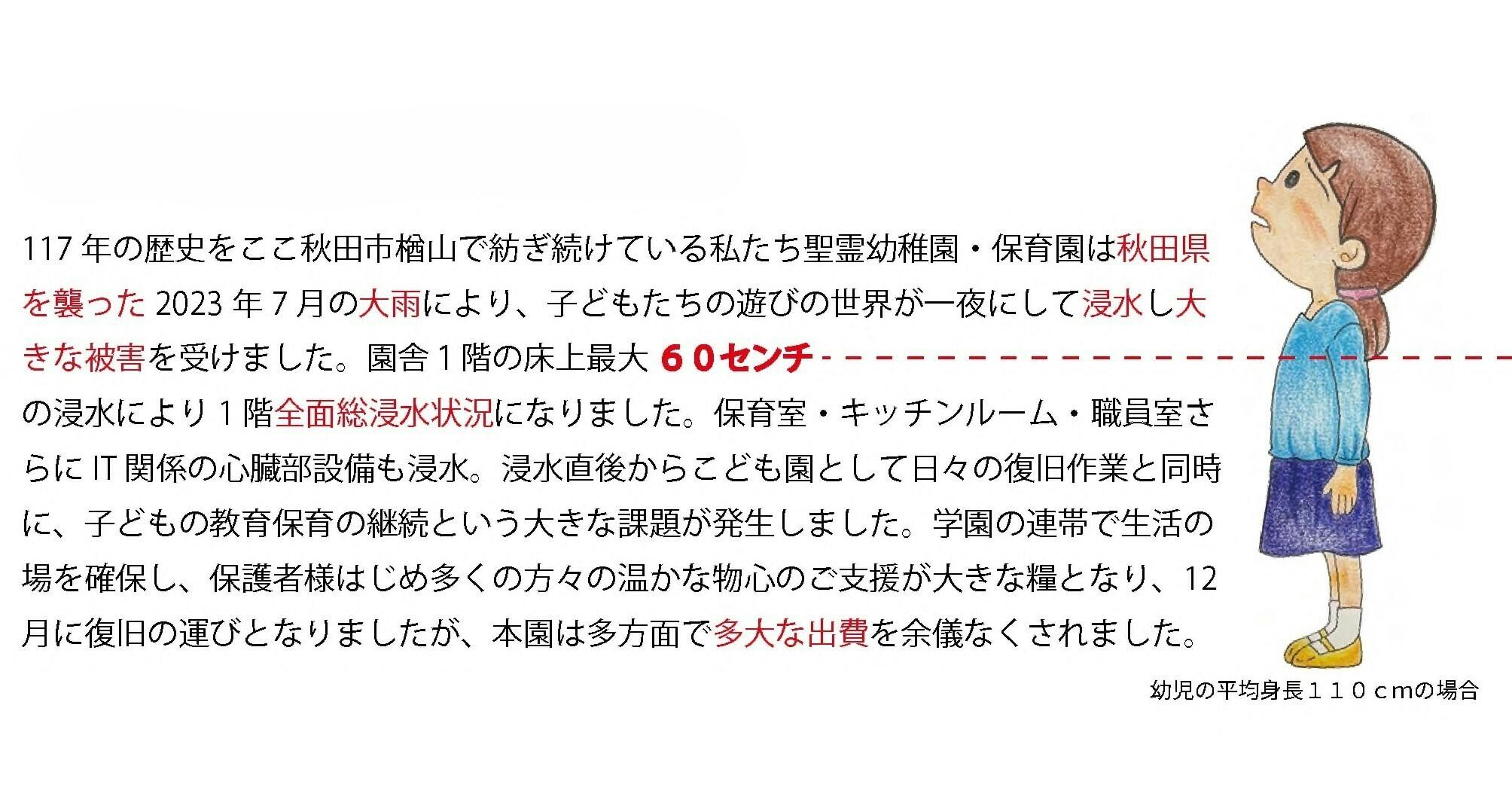 止水板設置には約500万円が必要となり、そのうち250万円は施設が自己負担し、残りの250万円を皆様のご支援をお願いすることとしました。皆様からお支えいただいたご支援は、全て止水板の設置費用(園敷地内6カ所)に充てられます。私たちはこのクラウドファンディングを通して、園での子ども達の生活のみならず、地域とのつながりを密にしながら子ども達が安心して未来を築く事ができるように、笑顔を守ることができるよう、「光の子として」の未来への一歩を踏み出していきたいと思っております。