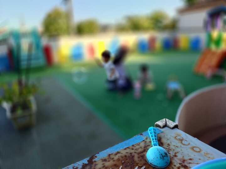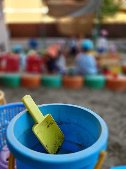 園庭のお砂場では子どもたちが全身に砂をかぶりながらも友達と笑いあい