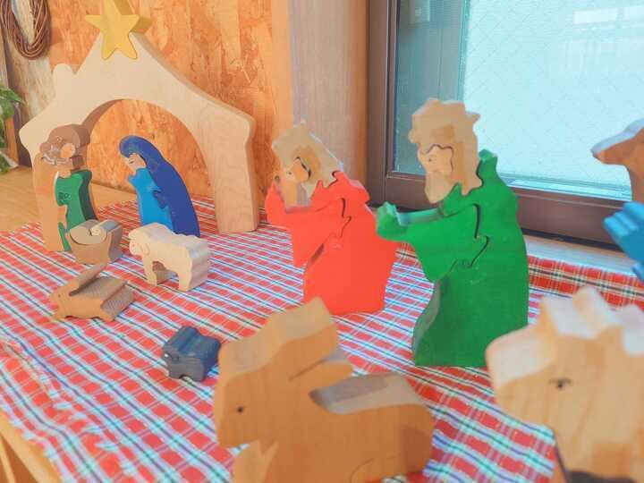 園内でも 降誕場面を表す馬小屋の飼い葉桶に生まれたばかりのかわいいイエスさまが置かれ 小さな命の誕生をお祝いし 光の導きに 心穏やかに クリスマスをお祝いし お祈りします