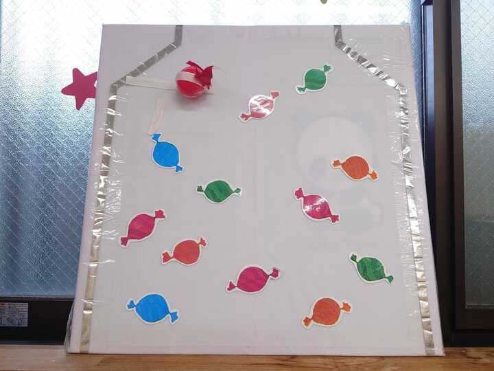 これ、な~んだ?おやおや、キャンディーの瓶の中には色とりどりの美味しそうなキャンディーがあります。でも、よーく見ると、何だか違う姿が…『先生もやってみる?』見せてくれたのは バケツいっぱいの『きんぎょ』きんぎょさんを キャンディーの瓶の中(パネル)に…えいやっ!!うまくいくとペタッとくっつく、大人手作りのぺたぺたおもちゃ!!フォームもなかなかなもので、ばっちり☆おぉ‼ ここに好投手発見!!!みんなと一緒に次から次へとくっつけます。おやおや?こちらは何だか道路が出来ているよ。どれどれ、こっちにドライブ行ってみようかな?一生懸命考えて、長~い道路を作ってくれました。さてさて、この先、どこに繋がるのかな?道路工事の横では何だか美味しそうな香りもしてきました。みんなは思い思いに粘土を≪コネて≫≪マルめて≫お皿に≪のせて≫自分の思うものを作っています。自分で思うものを形にするって、すごい!!!すると、お友だちが一人側に来て…『はい!どうぞ!』おいしそうなお菓子を届けてくれました。頬っぺたが落ちそうなくらい、美味しい!!!ありがとう!今日はあいにくの天気。お散歩に行こうと外の玄関鉄扉まで出たとたんに…ざざざざざーっっ!!!!!…大人は「えぇ~!!」と声に出て、びっくりした様子が見えましたが、子どもたちは…びっくりすぎて固まっちゃった!でも、きっと晴れるはず!お日様が笑顔を見せてくれるはず!!じっと雨が止むのをまっていると、ちゃ~んとお空は返事をしてくれました。みんな元気に 『ちょっと そこまで~!!』お散歩に行けて、よかったね!子どもたちは楽しい事を見つける名人!雨だけど…お日様さ~ん!!お顔見せて~♪道路を繋げて…こちらまでどうぞ!いらっしゃいませ~♪きんぎょを 投げて、キャンディーみたいに…ぽ~ん♪(なげた~!くっついた~!!次もできた~!)粘土をコネコネ、美味しそうなお料理(お菓子)できました♪誰かに届けるとステキな笑顔に出会えるのも嬉しい♪子ども一人ひとりに、きっとまだまだ楽しいお話がたくさんあったはず!その場面に出会えることの楽しさと、こんなことも出来た!という喜びに、そして、成長という小さな一歩に気づけた大人の嬉しさ。たくさんの出会いと気づきに感謝です。さ~て、明日は何があるかな?楽しみ楽しみ!!!