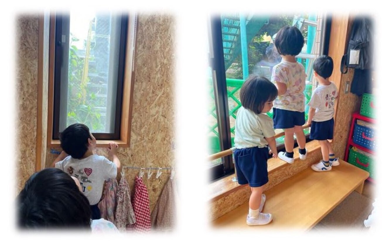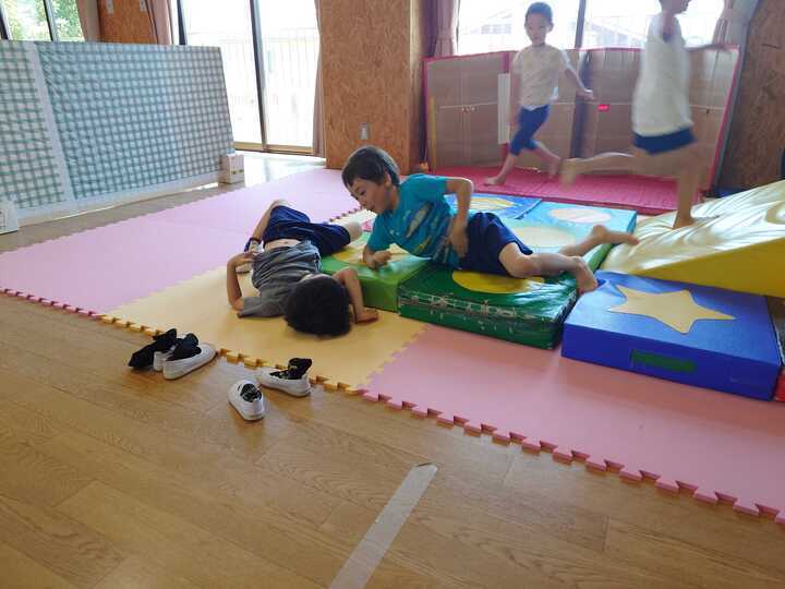 本日は猛暑!窓を開けても、みんなの大好きな園庭に抜けるテラスの扉を開けても、熱風しか入らない!本当はお日様をいっぱい浴びて、めいっぱい身体を伸ばして遊びたいけれども、今日はみんな一緒、ホールで遊ぶぞ!おやおや、ここで年中のお友だちがなにやらお話しているよ。『ぼく、いっぱいジャンプできるよ~』『すっごい、とべるんだよ~』…もしょもしょもしょ…そこからが早い早い!!カメラに捉えきれないほどのスピードでジャンプ!大きなマットまで…『とどいた~!』『あとちょっとだった~!』『おもしろ~い!もう1回やる~!』全身をバネのようにしならせて飛んでみたら楽しいね!だんだんコツもつかんで、レッツ・チャレンジ!!そんな中、女の子はカラフルなスカートを身に着けて何に変身したのかな??とっても素敵だよ☆お兄さんお姉さんたちの元気な姿を見て、小さい組さんもドキドキチャレンジ☆『つぎのところまで、あとちょっと…』『どっちのあしだしたらいいの~!?』『いっぽんばし…わたしドキドキ!せんせい、そこで見ていてね☆』みんなの、できた時のやった!のお顔、ちょっと失敗して悔しいお顔、次に頑張るチャレンジお顔、みんなで楽しんでいるうれしいにこにこお顔、先生たちはその瞬間に出会えることがすごく嬉しいよ。そして、ずっと見守っているよ。みんな、大きくなるって素敵だね。一緒の時間を過ごせるって、素敵だね。今日もいい日をありがとう。聖霊幼稚園を見守っている鳩と共に…空高く突き抜けるような青さの晴天、秋田です…