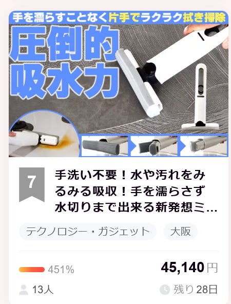 11月11日より開催しました手洗い不要!水や汚れをみるみる吸収!手を濡らさず水切りまで出来る新発想ミニモップス「Quickley-クイッリー-」ですが公開当日にガジェットカテゴリーでランキングインする事ができました。