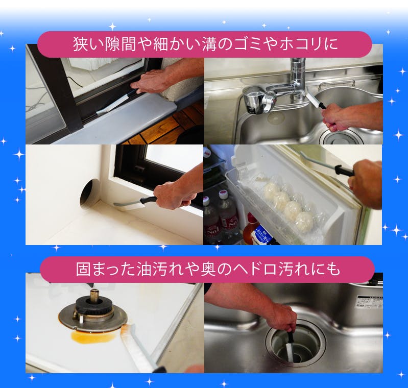 狭い溝のお掃除はもちろん!コンロの隙間に溜まった頑固な油汚れも、このとおりスッキリ綺麗に。