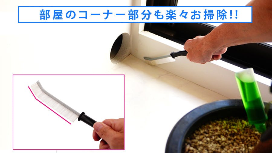 お掃除で一番妥協しがちなコーナー部分ですがJの字先端ブラシがダイナミックに埃やごみをとらえてくれます。