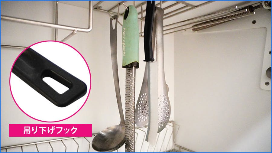 フック付だから使いたい時に簡単に使えて収納も楽々!