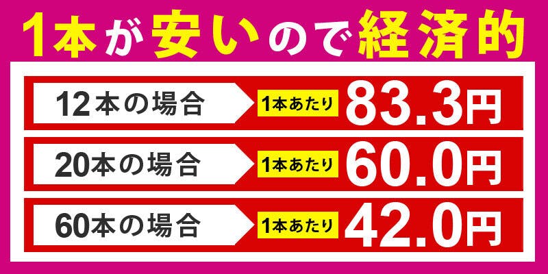 最小12本~最大60本セットだから、どんな場面でも使い放題!汚れの用途によって使い分けはもちろん、各部屋に置いても良し、アウトドアなど屋外にも使えて便利。お値段も1本あたりが安いので経済的です。