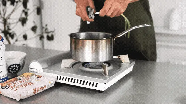 調理中のラーメンにネギをカットしてダイレクトイン!調理の作業効率アップで時短に!