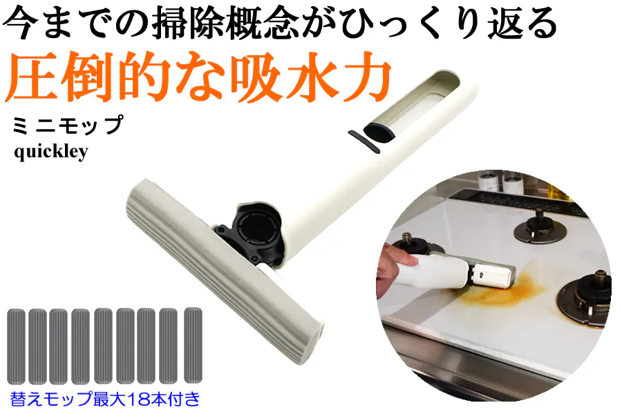 掃除革命!水や汚れをみるみる吸収!手洗い不要で水切りまで出来る新発想ミニモップ