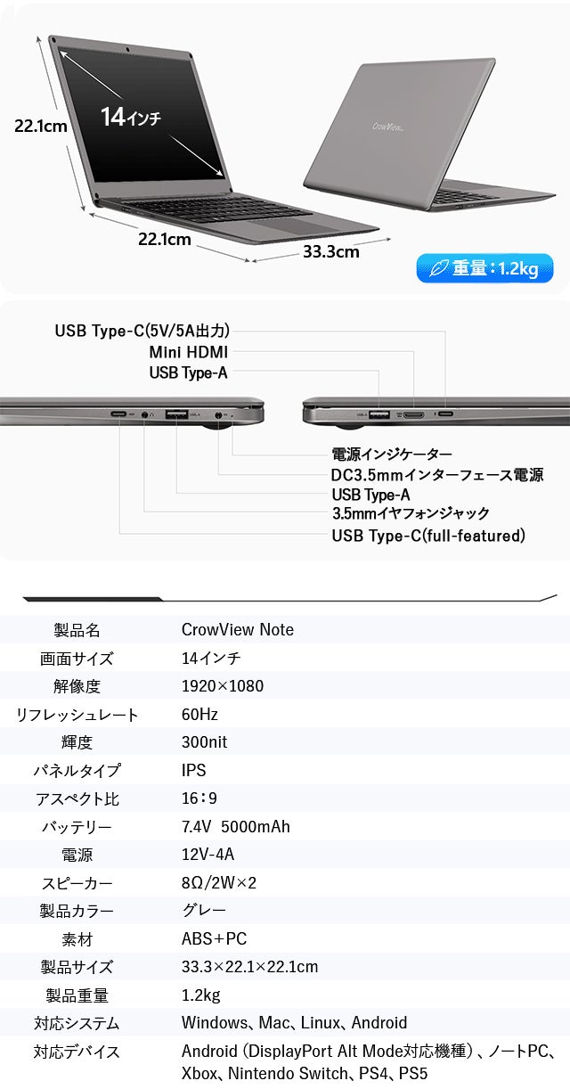 A1:はい、CrowView NoteはMac OS、Windows、Linux、DisplayPort Alt Mode対応のAndroidのOSを含む様々なオペレーティングシステムで動作します。