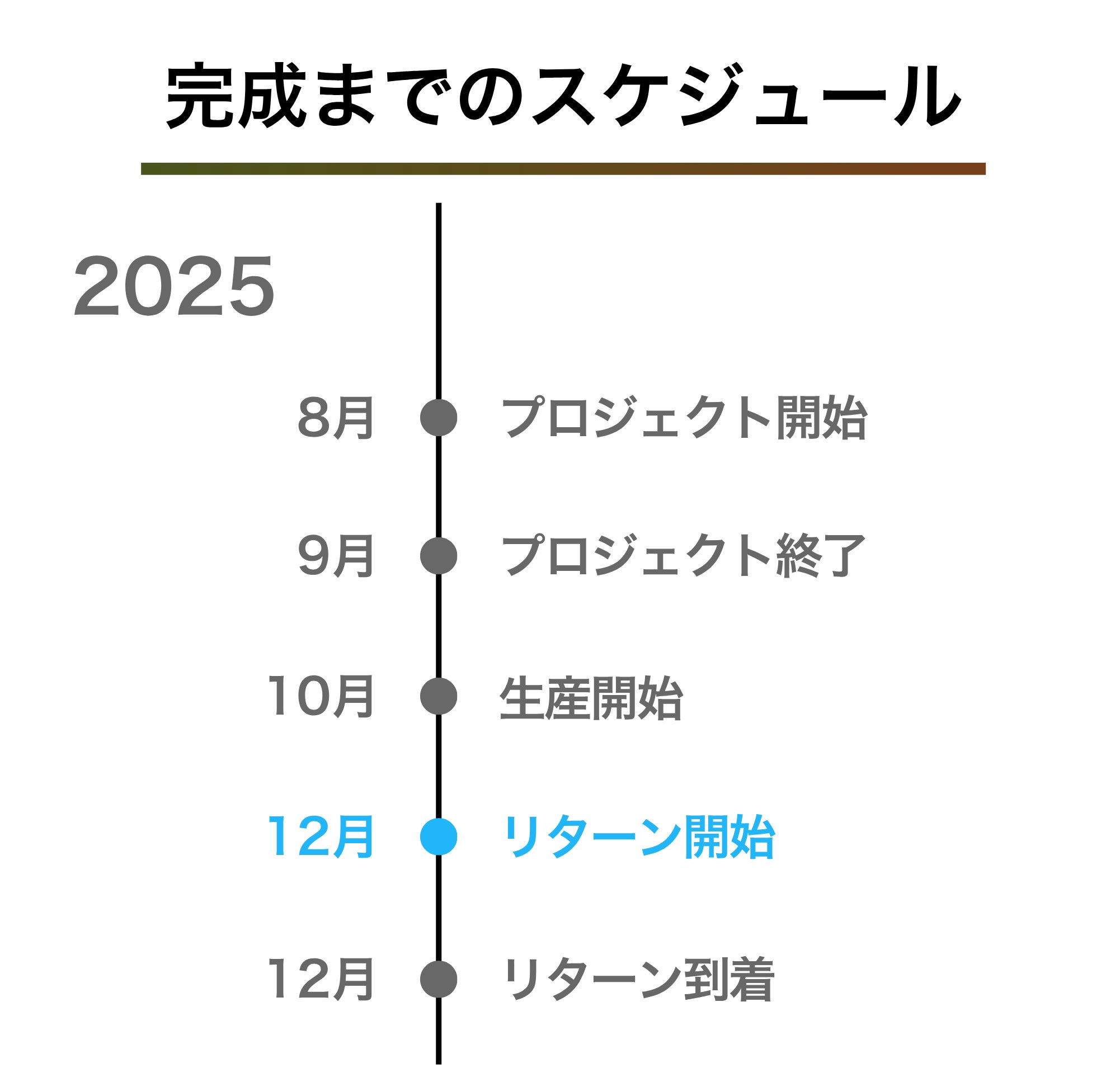 ※本文中に記載させていただいたスケジュールは、あくまでプロジェクト公開時点の予定です。クラウドファンディングを経て輸入を行う性質上、配送遅延のおそれがございます。
