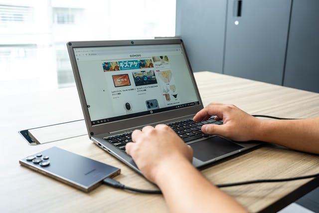 映像出力対応のUSB-Cケーブル1本*でいつものスマホがノートPCに変身完了。