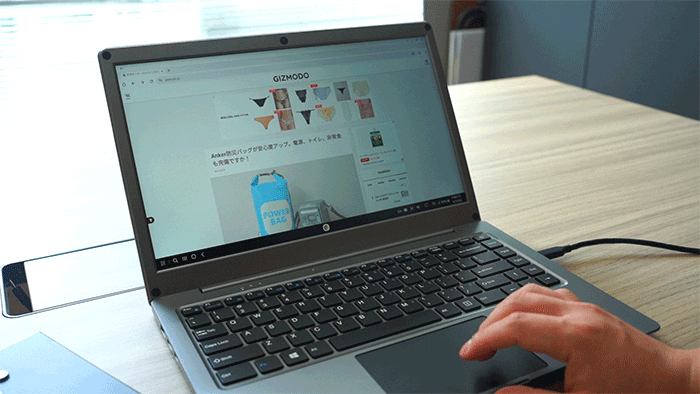 タッチクリックと押し込みクリックどちらも対応しており、アプリ切り替えもジェスチャーで使えました。
