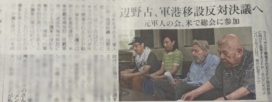 VFP-ROCK(琉球・沖縄国際支部)は2016年2月に結成し、沖縄の平和アジアの平和、世界の平和を求めて活動しており、過去に二度、米本国でのVFP総会に会員を派遣し、辺野古や高江の米軍基地建設の反対決議を採択させてきました。