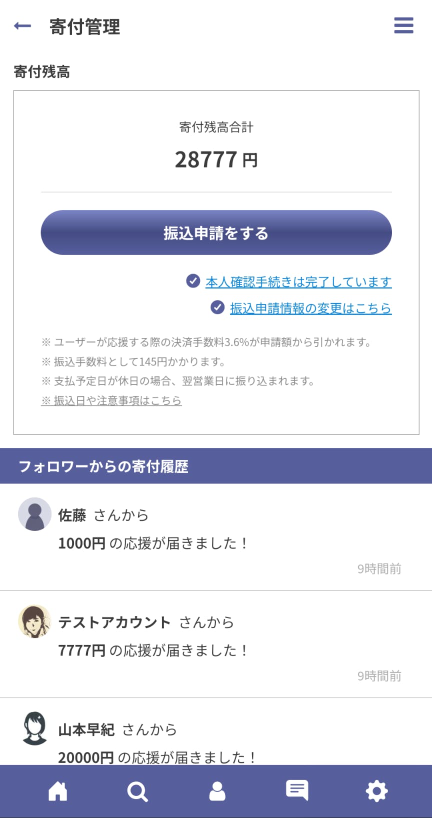 また、振込申請の手続きには本人確認審査の通過と口座情報の入力が事前に必要になっています。