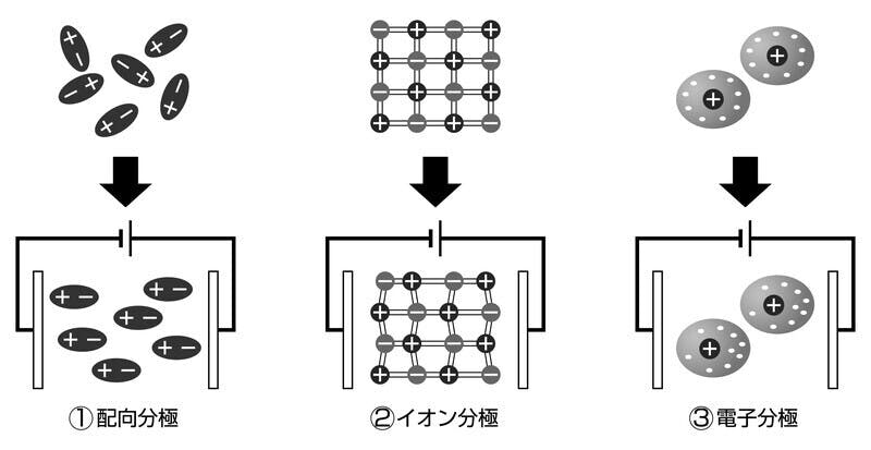 分極には3種類ありますが、電子分極は原子内部の構造変化です。(https://www.vinita.co.jp/institute/radiofrequency/020040.htmlより)