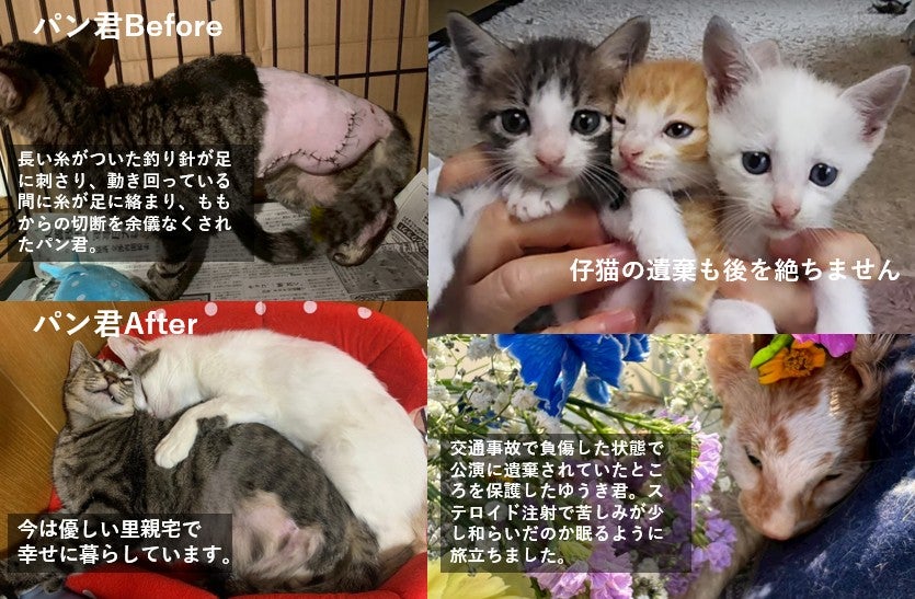 どうか、この活動を続け、遺棄され傷ついた猫たちを救うために、皆さまのご支援を心よりお願い申し上げます。