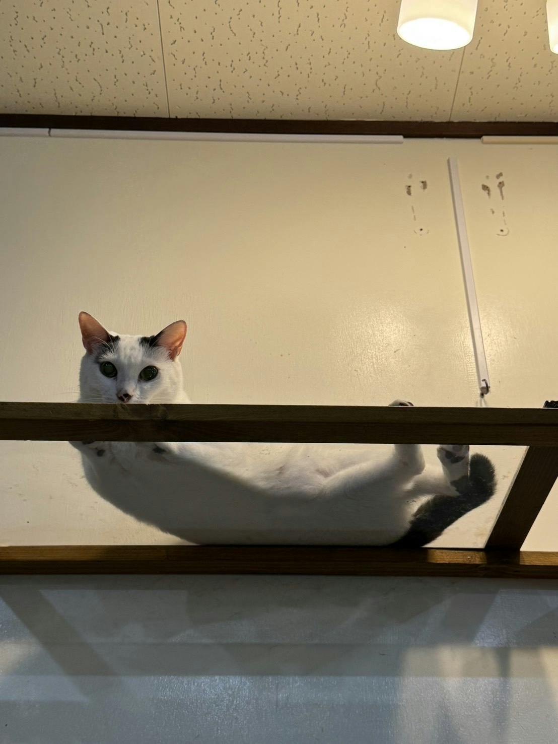 スタッフが脚立で向かい、捕まりました。