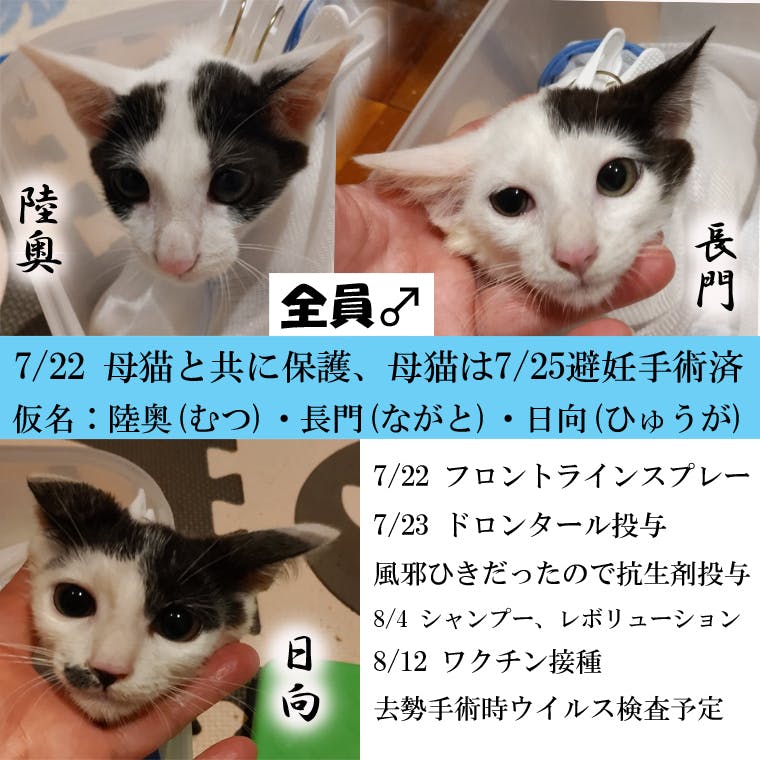8/19に2匹、8/20に1匹、去勢手術予定です。