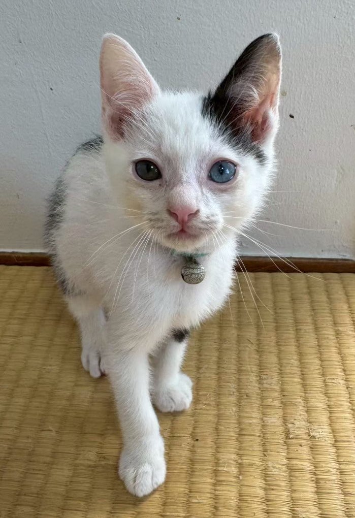 左右の目の色が違うオッドアイの男の子、ミルクボランティア育ちでとても人懐っこくて可愛いです。