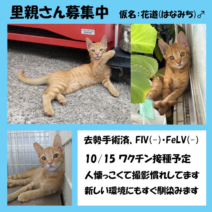 画像は10/8から保護中の仔猫「花道」くんです。