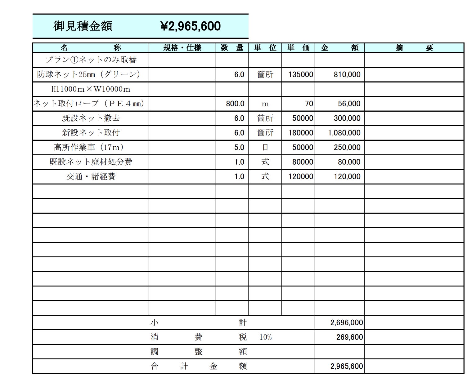見積もりをしたもらった結果、ネットの取り替えだけで295万円かかることがわかりました。