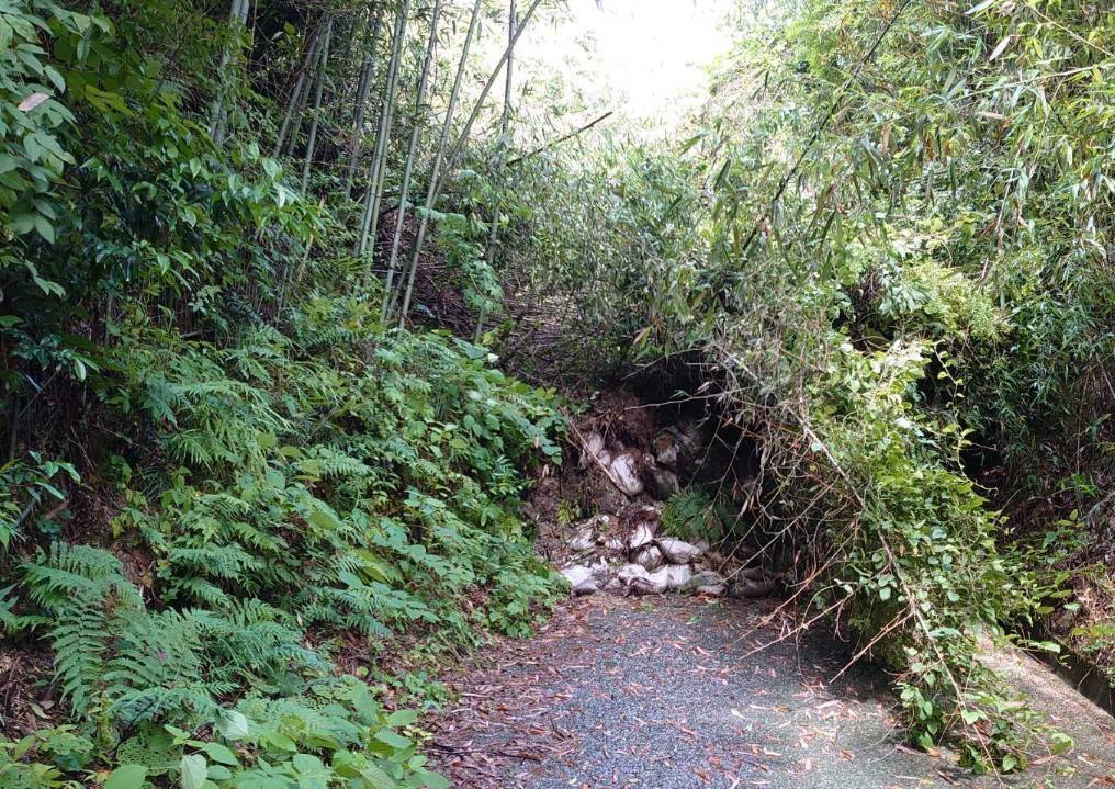 また、グラウンドへと続く坂道では土砂崩れが発生し、安全な通行にも支障をきたしています。