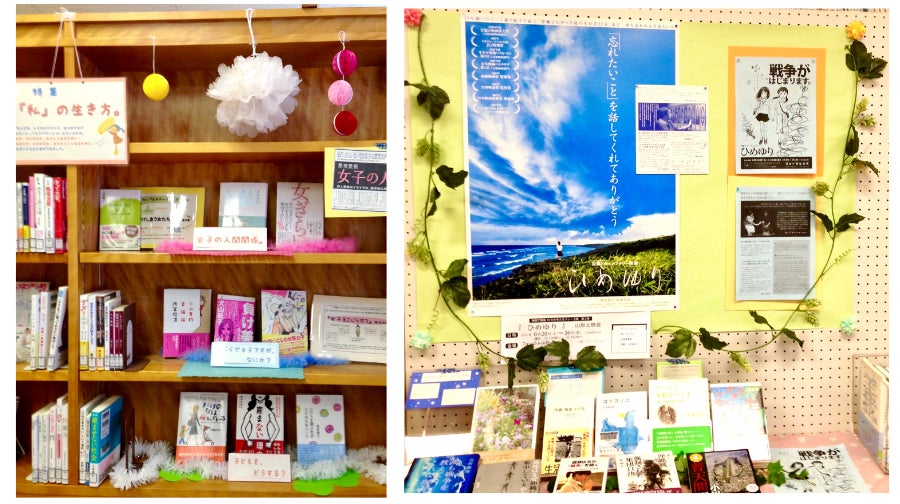 学校図書館司書時代の展示(女性の生き方についてのコーナーなどを作っていました)