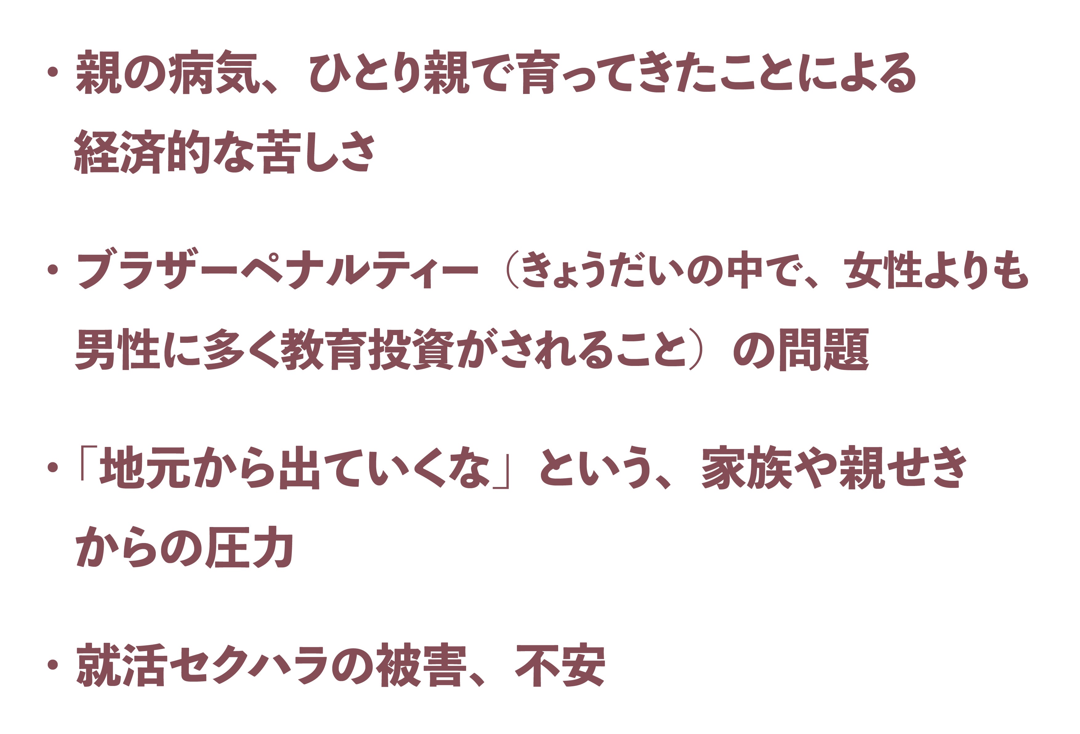 子どもでも大人でもない10代後半~20代の女性たちの声は、なかなか表には出てきません。