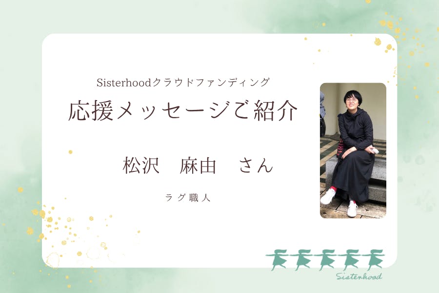 今回の応援メッセージは、Sisterhood活動開始時から会員として関わってくれている、松沢さんからの文章です。Uターンしてきた地方での、子育ての悩みや不安、仕事や家族との関係など、さまざまなことをいつも適切に言語化してくださり、Sisterhoodの活動のヒントをいただいています。
