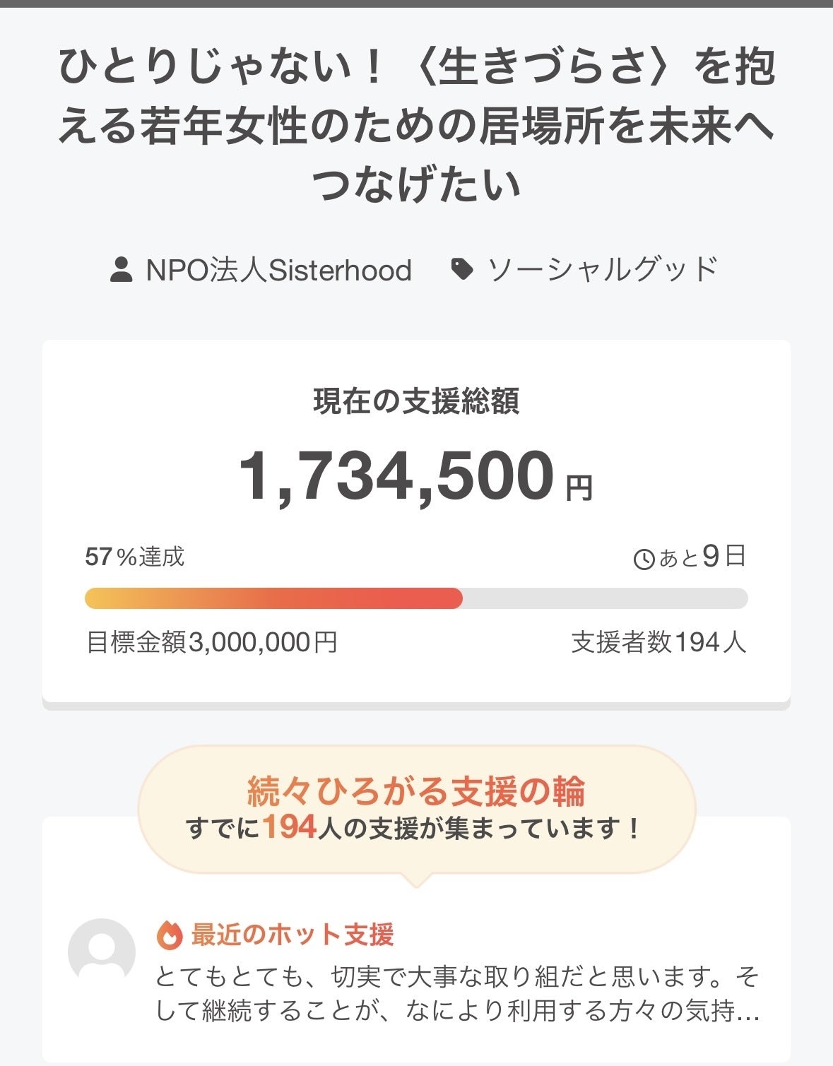 若年女性のフリースペースMayflower継続のためのクラファンも、残り9日となりました。