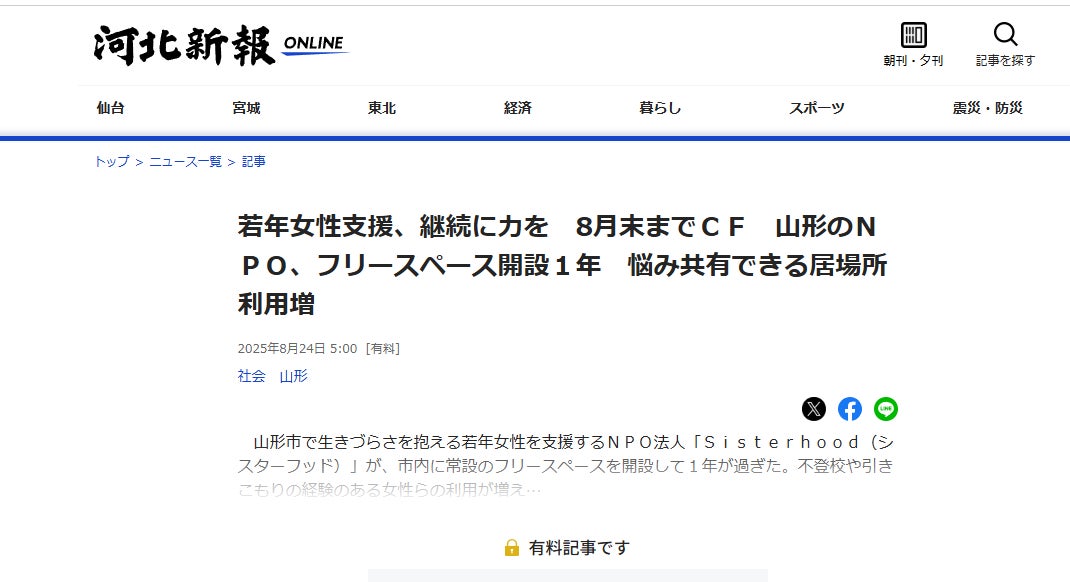 さて、8/24(日)には、河北新報の紙面にも大きく取り上げていただきました(有料記事)。