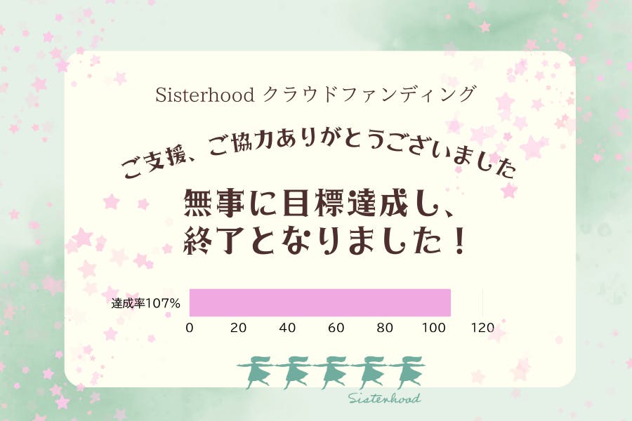 8/31(日)23:59をもちまして、Sisterhood「ひとりじゃない!〈生きづらさ〉を抱える若年女性のための居場所を守りたい」のクラウドファンディングが無事に終了しました。たくさんの方に応援、ご支援いただき本当にありがとうございました。