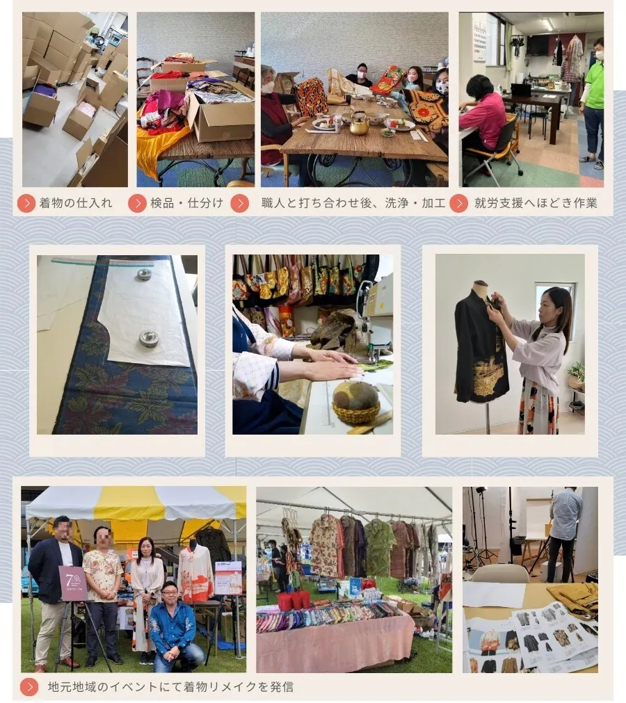 私たちはコロナ禍で大量に処分されていく着物の現実に衝撃を受け、「このままではもったいない」「何かできることはないか」と考えました。そこから、縫製職人の方々と出会い、着物の再生と職人の雇用創出を同時に実現するリメイク事業が始まり、現在では着物の適正購入をしております。