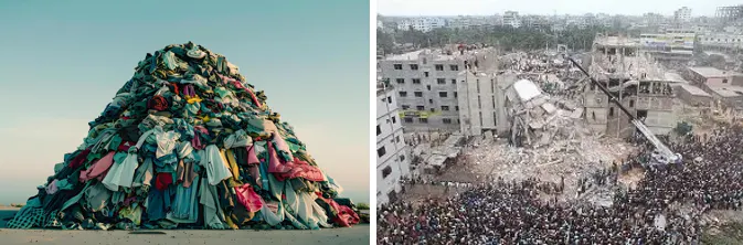その極端な現実を象徴するのが、2013年にバングラデシュで起きた「ラナ・プラザの悲劇」です。縫製工場が入ったビルが崩壊し、1,100人以上が犠牲になったこの事故は、ファストファッションの裏側にある労働環境の深刻さを世界に突きつけました。
