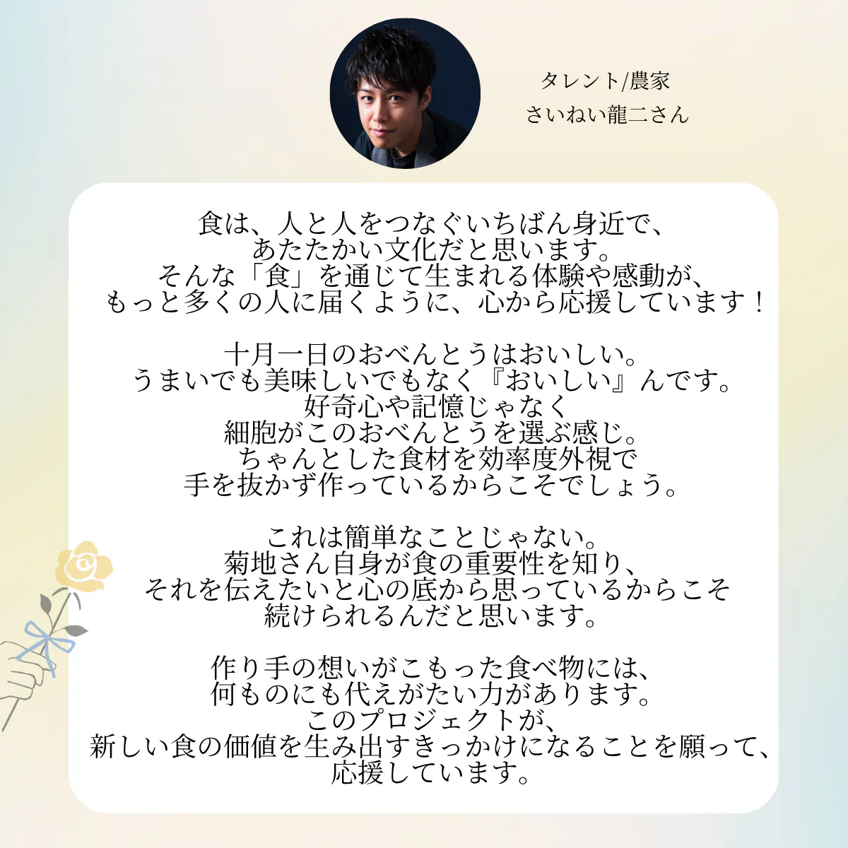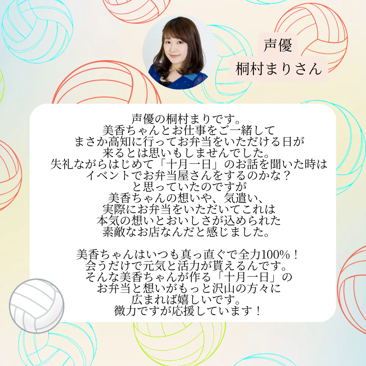 そして、より安定してたくさんの方に十月一日のお弁当を届けたい!