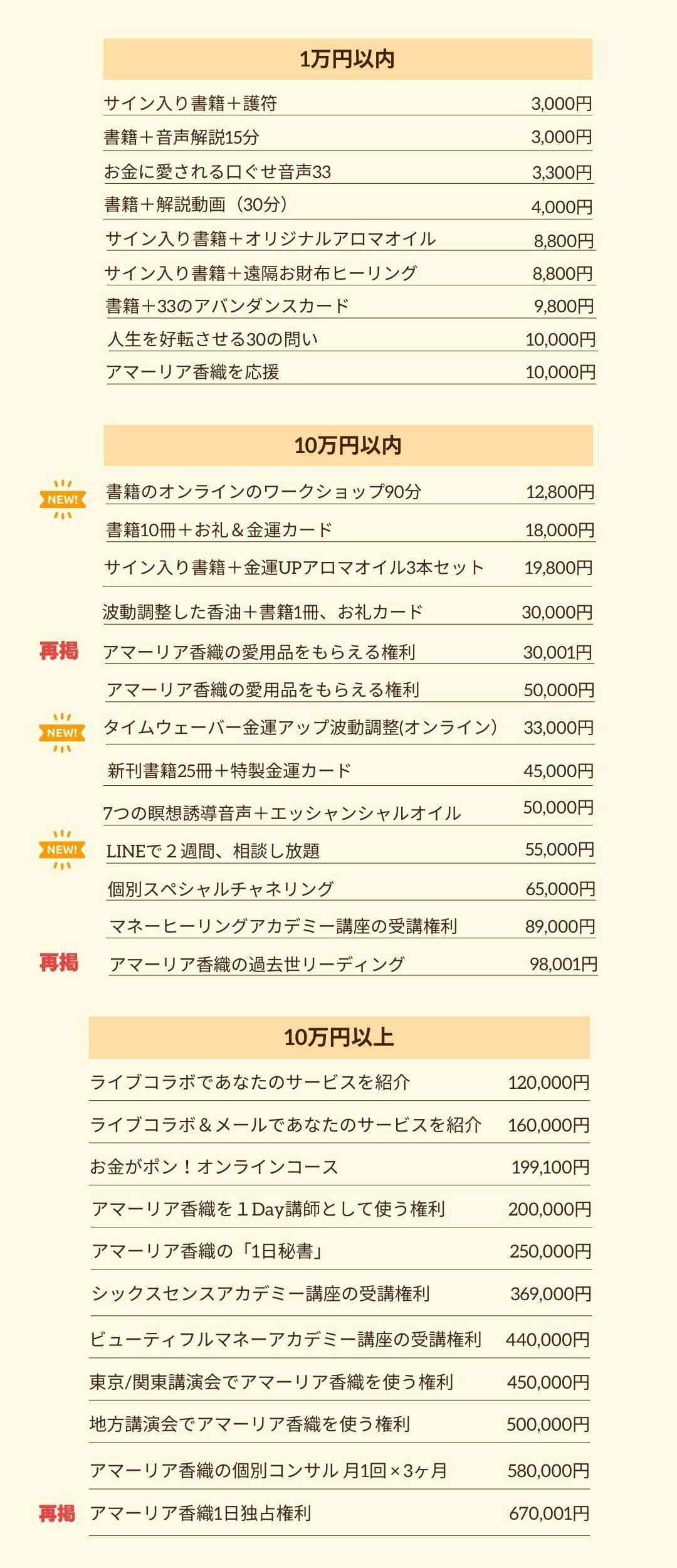アマーリア香織の書籍『ただの主婦が億万長者になれた 「金運・大逆転マニュアル」 お金がポン! 』の他にも、このクラウドファンディングでしか入手できない特別リターンも用意させて頂きました。